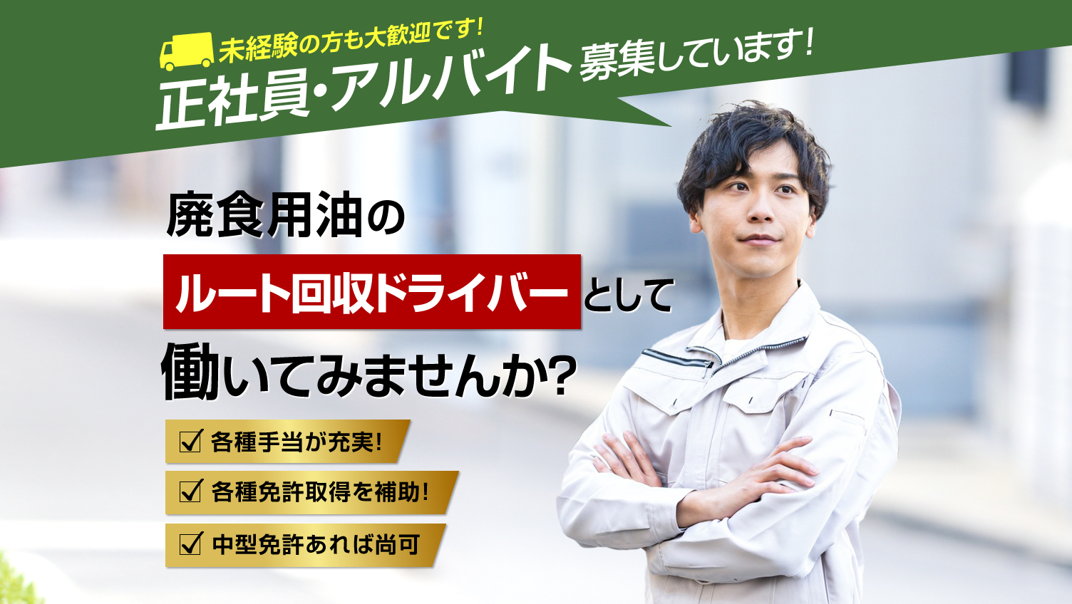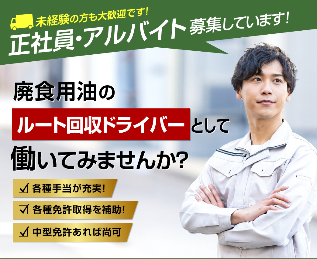 | 仕事内容 | 使用済み食用油の回収と関連作業 |